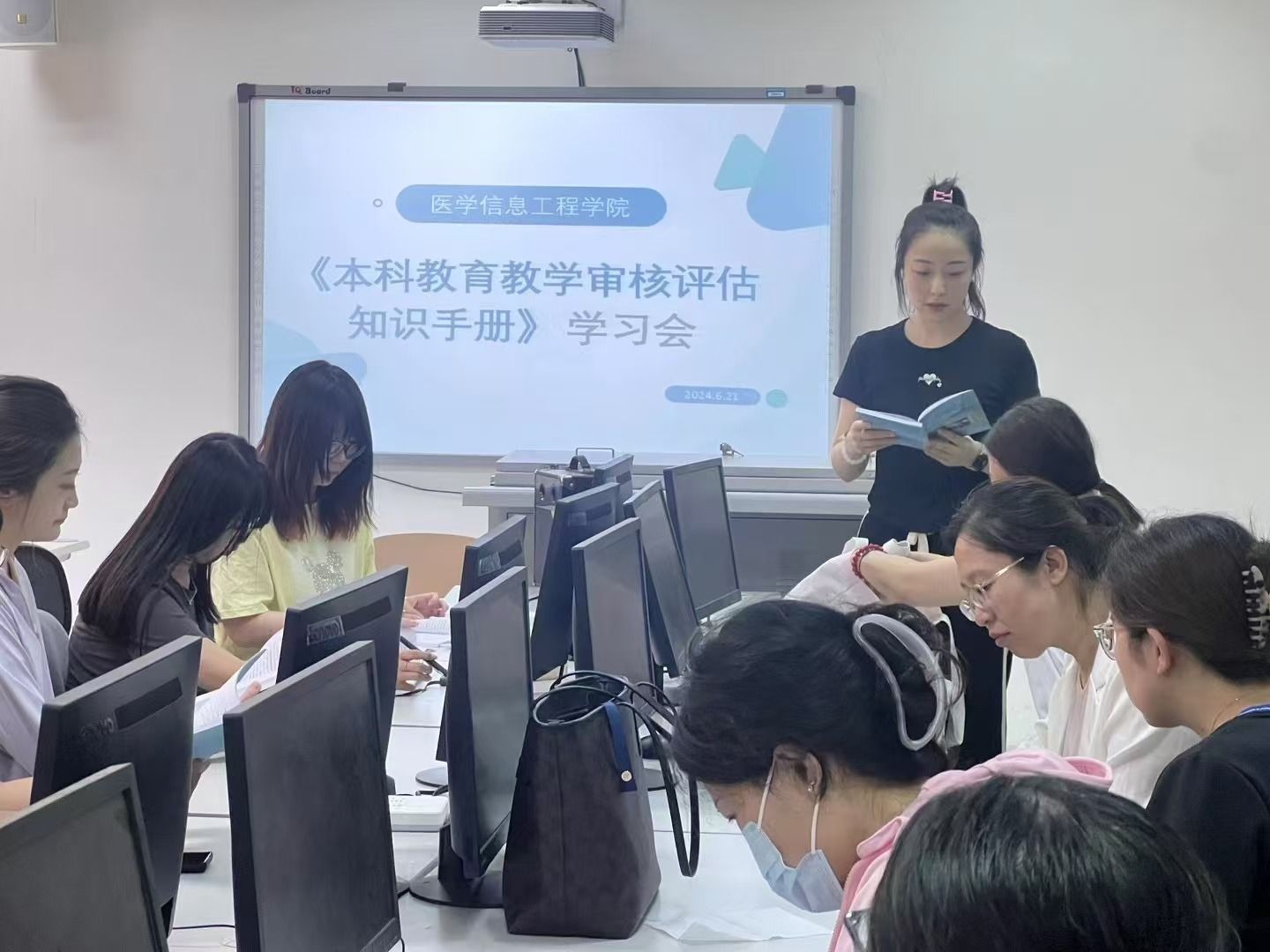ac米兰官方网站于6月21日组织开展《本科教育教学审核评估知识》学习会第三期,全体教工在博学楼B座606共同围读学习知识手册,会上强调学院要紧密围绕立德树人根本任务,“以评促建、以评促改、以评促管、以评促强”,从而推动学校学院高质量发展与建设。