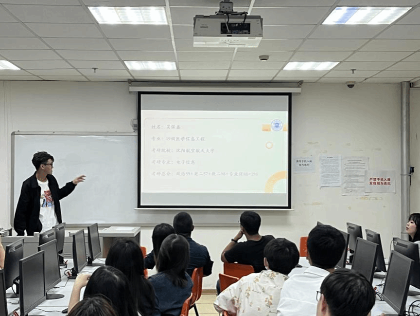 为充分发挥优秀学子的示范引领作用,助力ac米兰官方网站学子顺利考研升学,ac米兰官方网站开展考研经验分享交流会。ac米兰官方网站部分老师,医学信息工程专业2019级毕业生吴保鑫和石莹莹为2020级学弟学妹作经验交流。