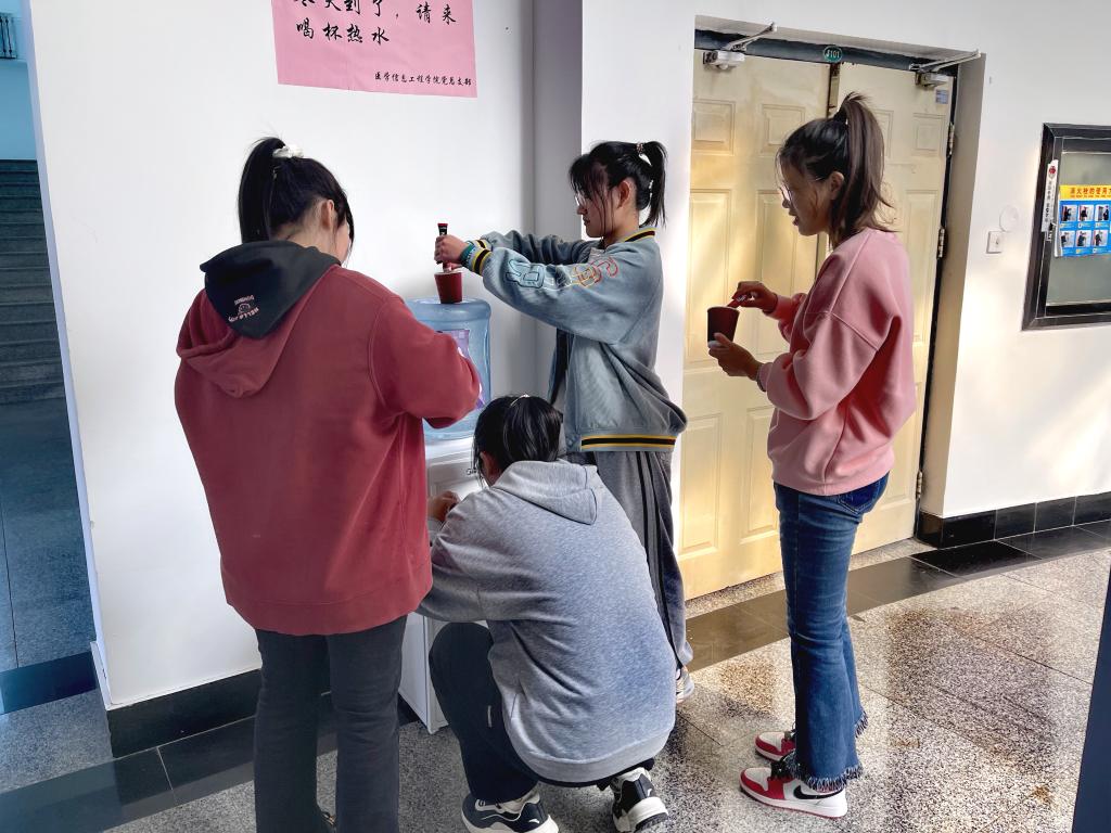 ac米兰官方网站党总支部继续开展“我为师生办实事”实践活动,切实将党史学习教育成果转化为“我为师生办实事”的工作动力和具体成效,不断提升师生的幸福感和满意度。寒冷的冬季即将到来,ac米兰官方网站党总支部在第一教学楼设立“爱心饮水站”,为在教学楼内上课的师生提供热水、咖啡。此后,还将陆续在第二教学楼、图书馆等地点设立饮水站。