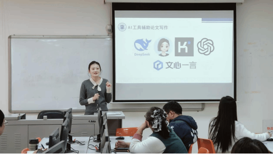 周文惠老师随后分享了关于论文辅助协作的内容。她详细介绍了如何利用DeepSeek结合豆包、秘塔AI、Kimi等软件进行论文的题目创作、摘要撰写、中英文翻译以及降重润色等工作。周老师的分享让参会者对AI在学术写作中的应用有了更深入的了解。
