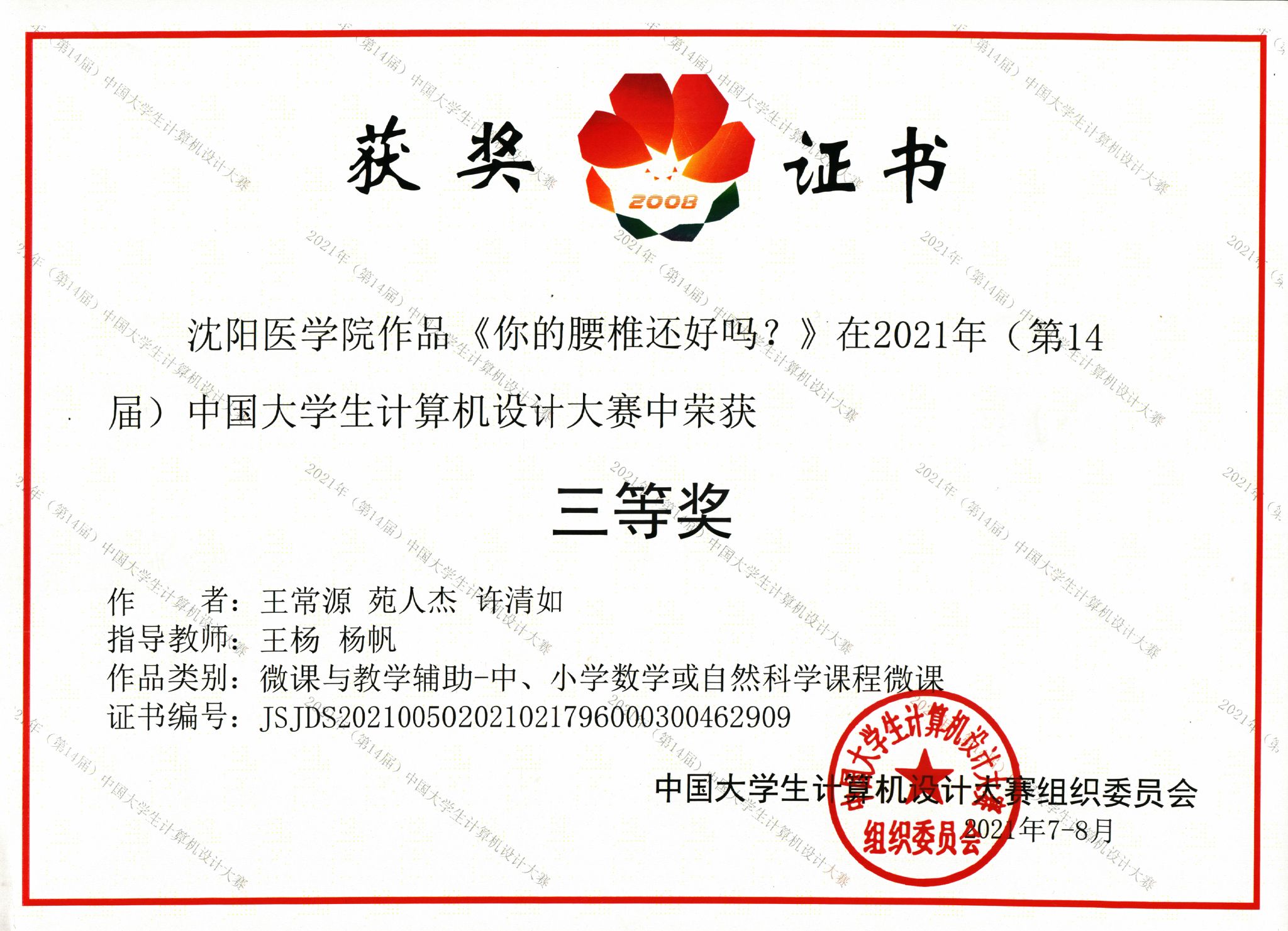 在近日举办的大学生计算机设计大赛中,ac官网学生团队众志成城、通力协作,在激烈的竞争中秉持积极向上的精神,以技艺高超的表现,以《你的腰椎还好吗?》科普视频荣获辽宁省大学生计算机设计大赛一等奖、中国大学生计算机设计大赛三等奖!彰显我校在科普领域有知识储备能力高和极高的实践能力。